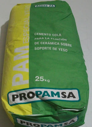 cerámica sobre soporte de yeso 25kg.